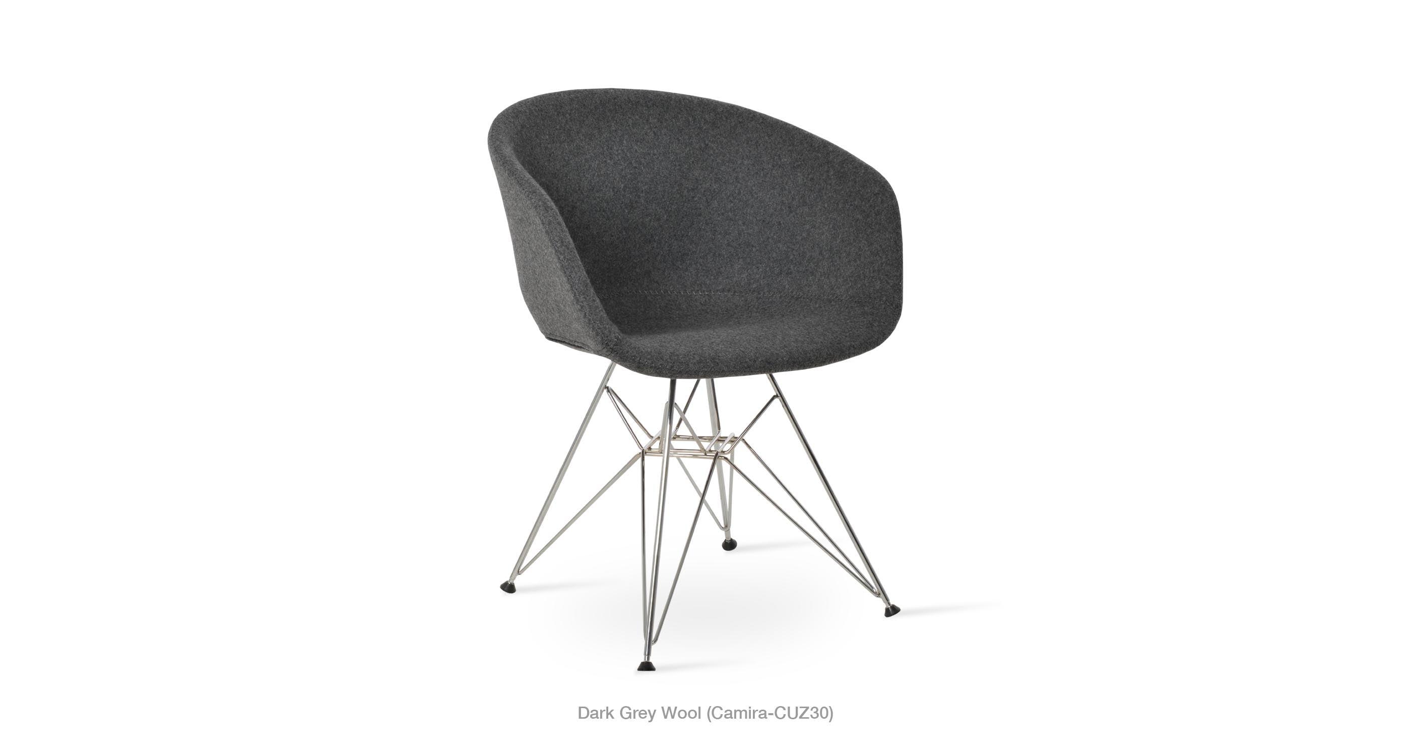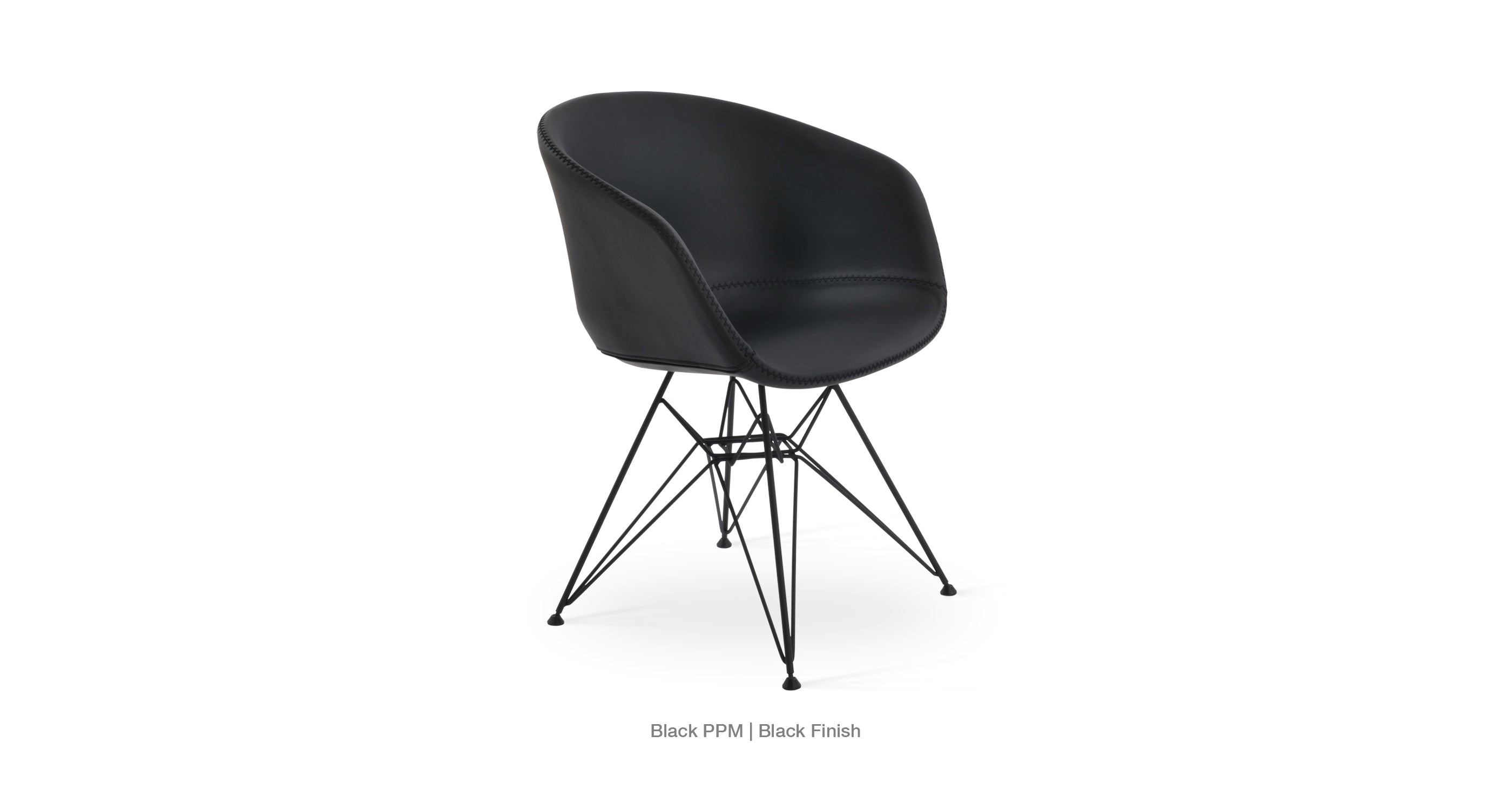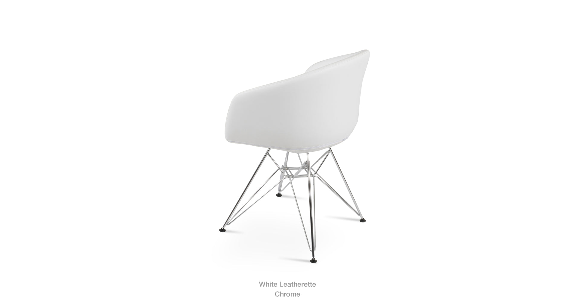 Tribeca Tower is a contemporary dining chair with a comfortable upholstered seat and backrest on chrome steel base as well as brushed black, white, red and gold options. Each leg is tipped with a plastic glide embedded into the metal wire. The seat has a steel structure with “S” shape springs for extra flexibility and strength. This steel frame molded by injecting polyurethane foam. Tribeca seat is upholstered with a removable zipper enclosed leather, PPM, leatherette or wool fabric slip cover. The chair is suitable for both residential and commercial use.