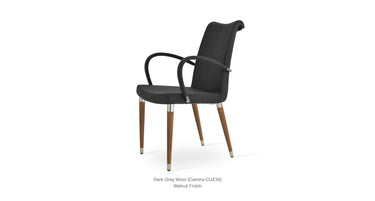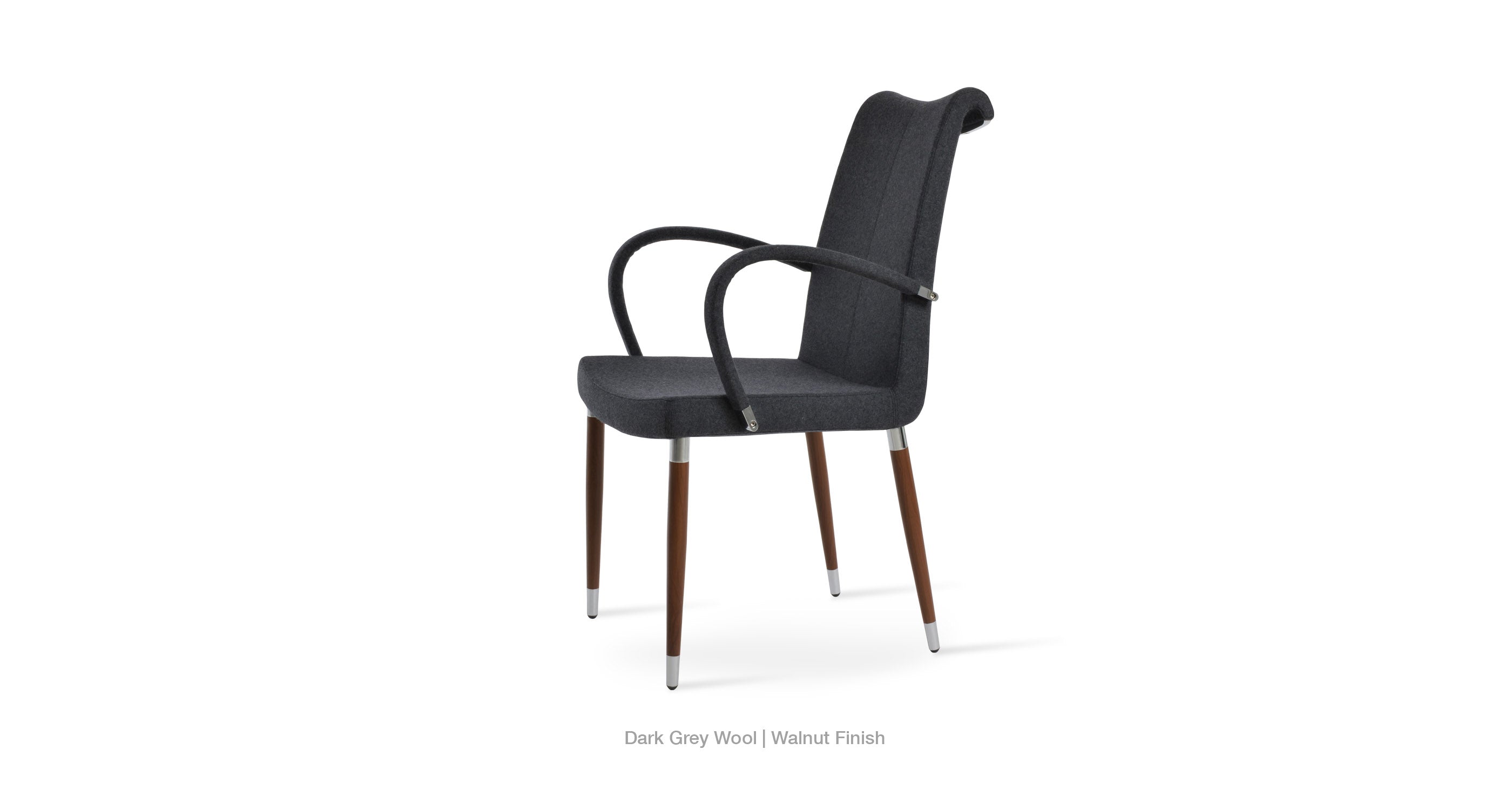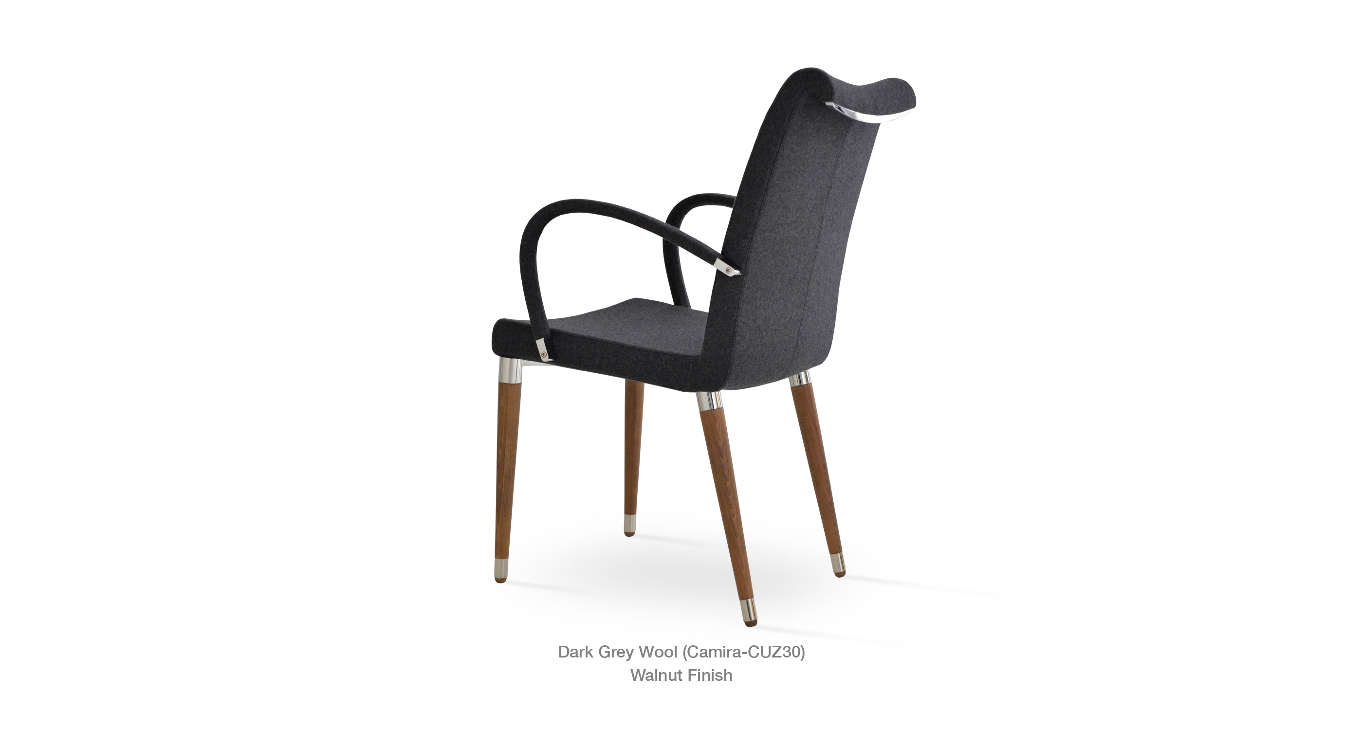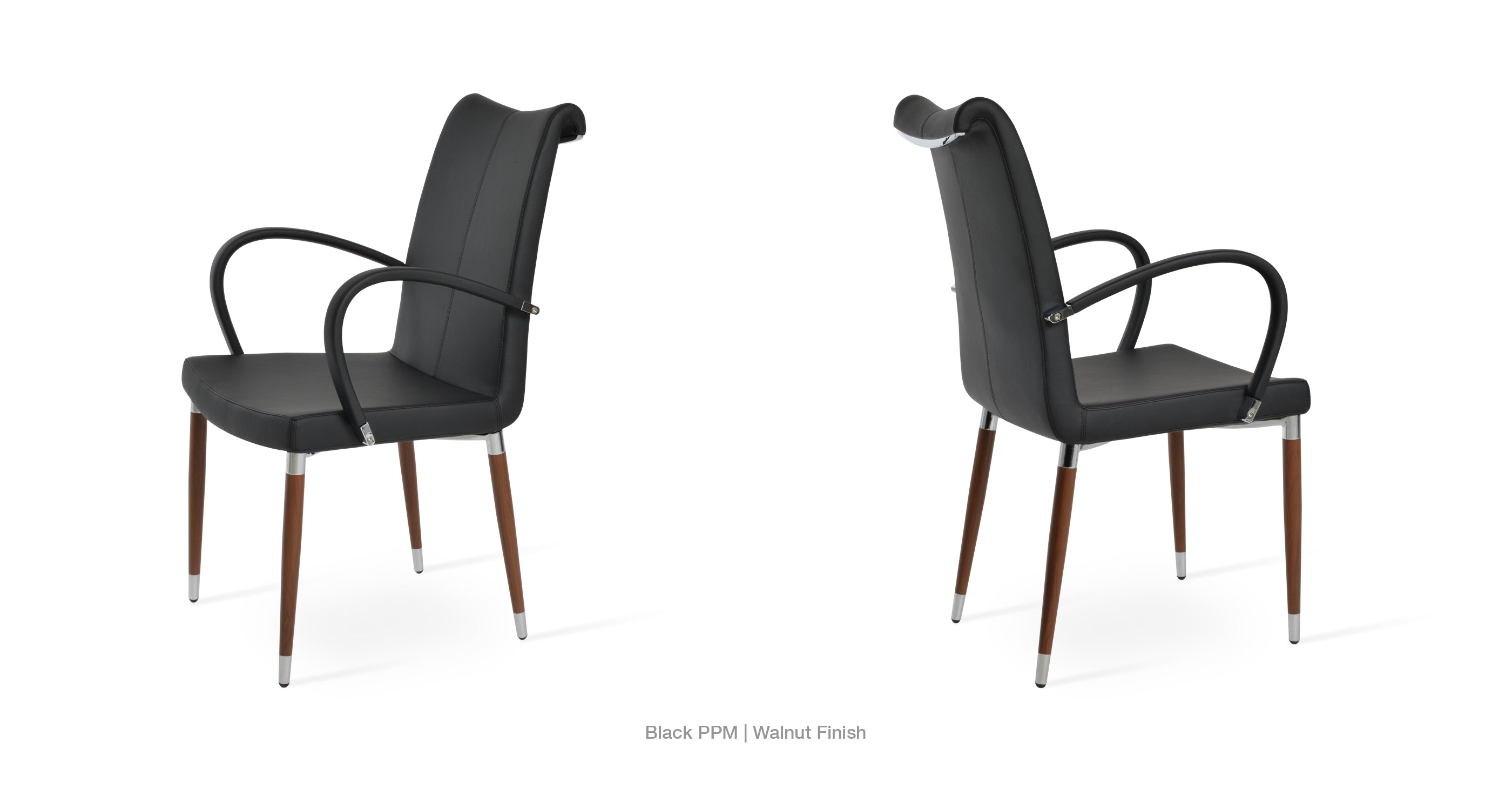 Tulip is an elegant dining chair with a comfortable upholstered seat and backrest on wood base which are plastic tipped. The curved backrest is trimmed with a chromed steel part that makes the chair look more elegant. The seat has a steel structure with “S” shape springs for extra flexibility and strength. This steel frame molded by injecting polyurethane foam. Tulip seat is upholstered with a removable velcro enclosed leather, PPM or wool fabric slip cover. The chair is suitable for both residential and commercial use.