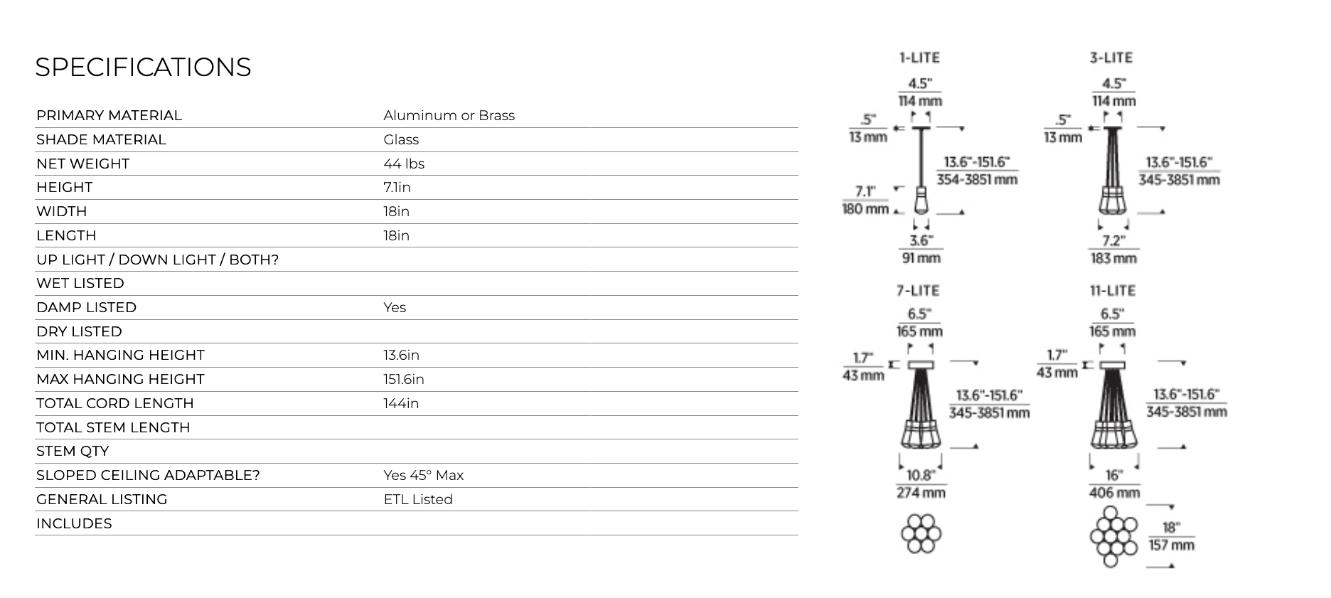 Cord Length | 144" (field-cuttable) |