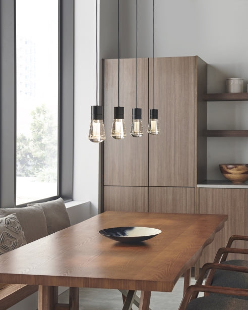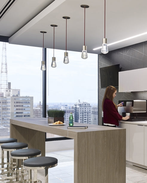 The Alva Pendant by Visual Comfort Modern Collection, designed by Sean Lavin, reimagines the classic Edison-style bulb with a contemporary twist. Featuring a solid optic crystal "bulb" with laser-etched filaments and a concealed downward-firing LED within the socket, it delivers a warm 3000K glow with 241 lumens. This pendant is ideal for modern kitchens, dining areas, or living rooms, and is compatible with ELV and TRIAC dimmers. Its minimalist design and customizable cord options make it a versatile choice for various interior styles.