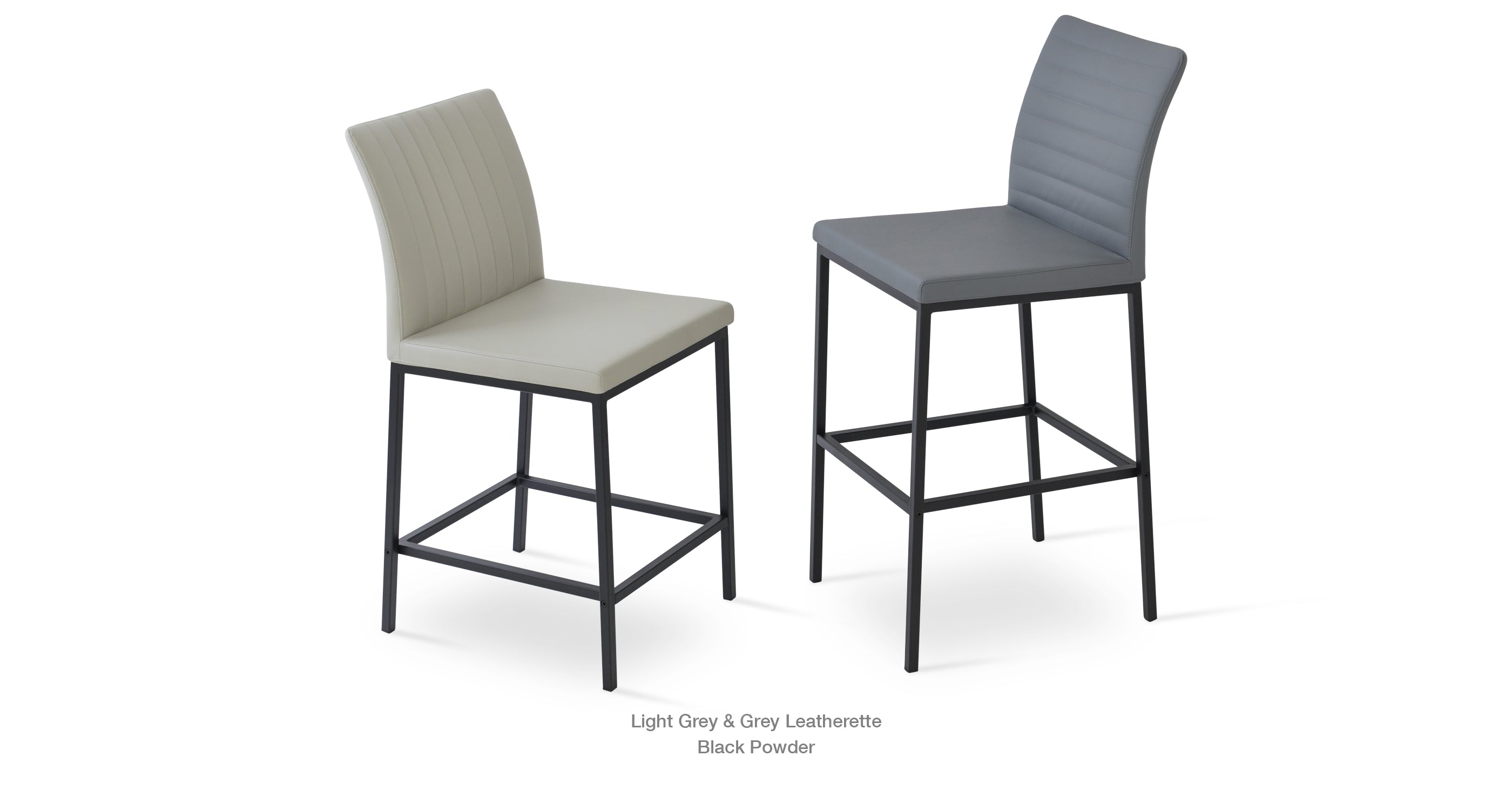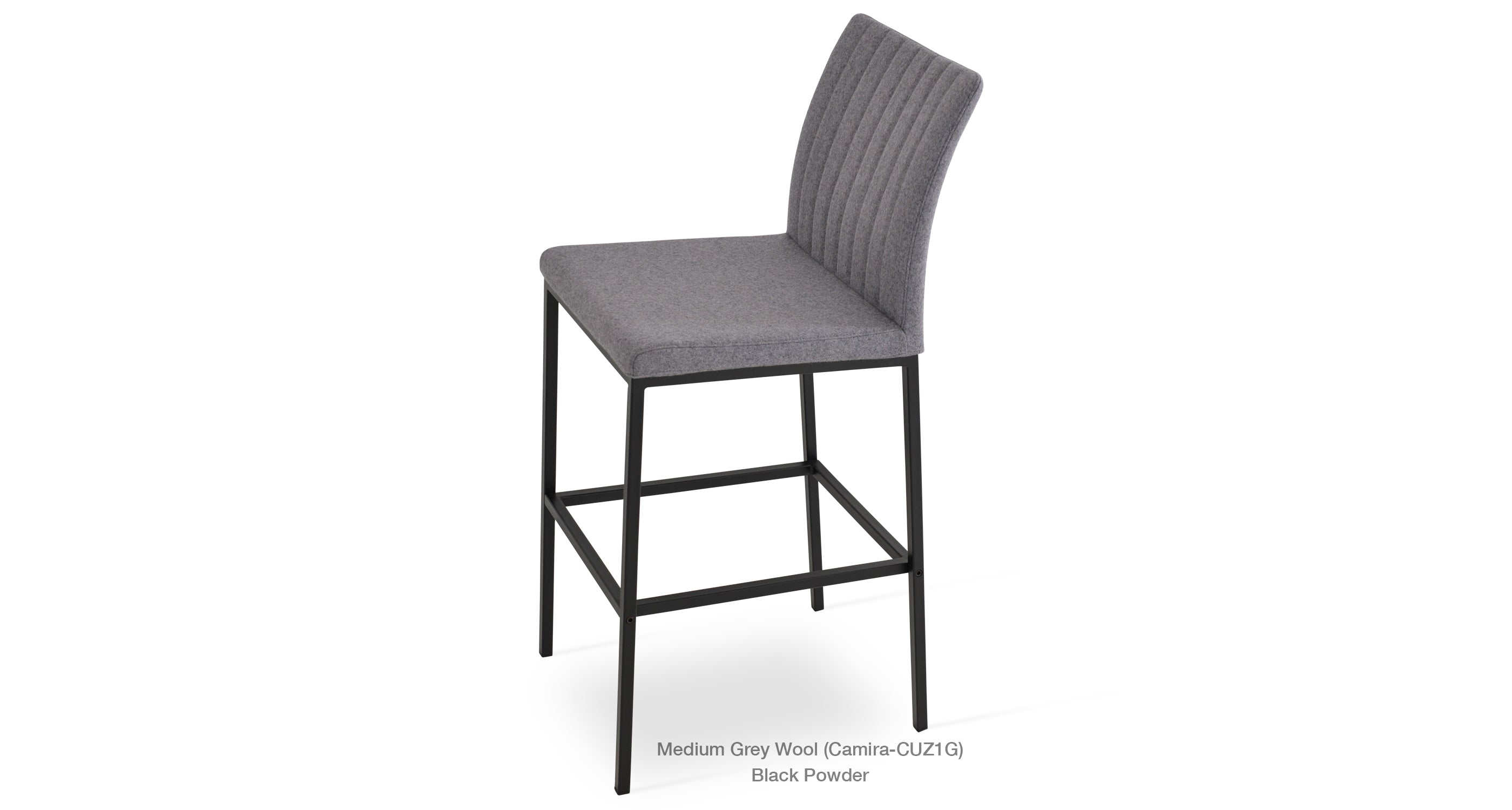 Zeyno Metal Stools is a contemporary counter and bar stool with a comfortable upholstered seat and backrest on chromed steel legs which are plastic tipped. With its chromed steel legs and footrests, it becomes an enduring style for bars and counters. The seat has a steel structure with “S” shape springs for extra flexibility and strength. This steel frame is molded by an injecting polyurethane foam. Zeyno seat is upholstered with a removable velcro enclosed fabric, leatherette, PPM, leather or wool fabric slip cover. The stool is suitable for both residential and commercial use.