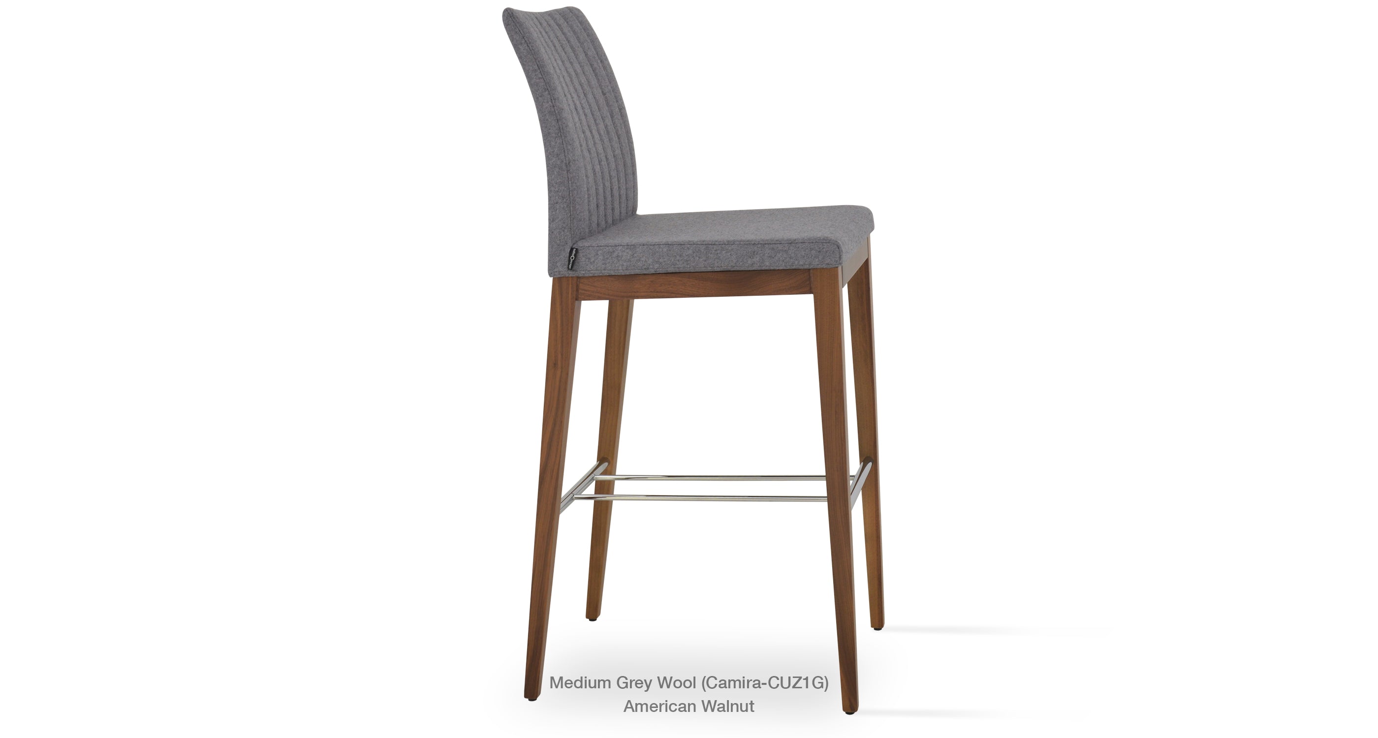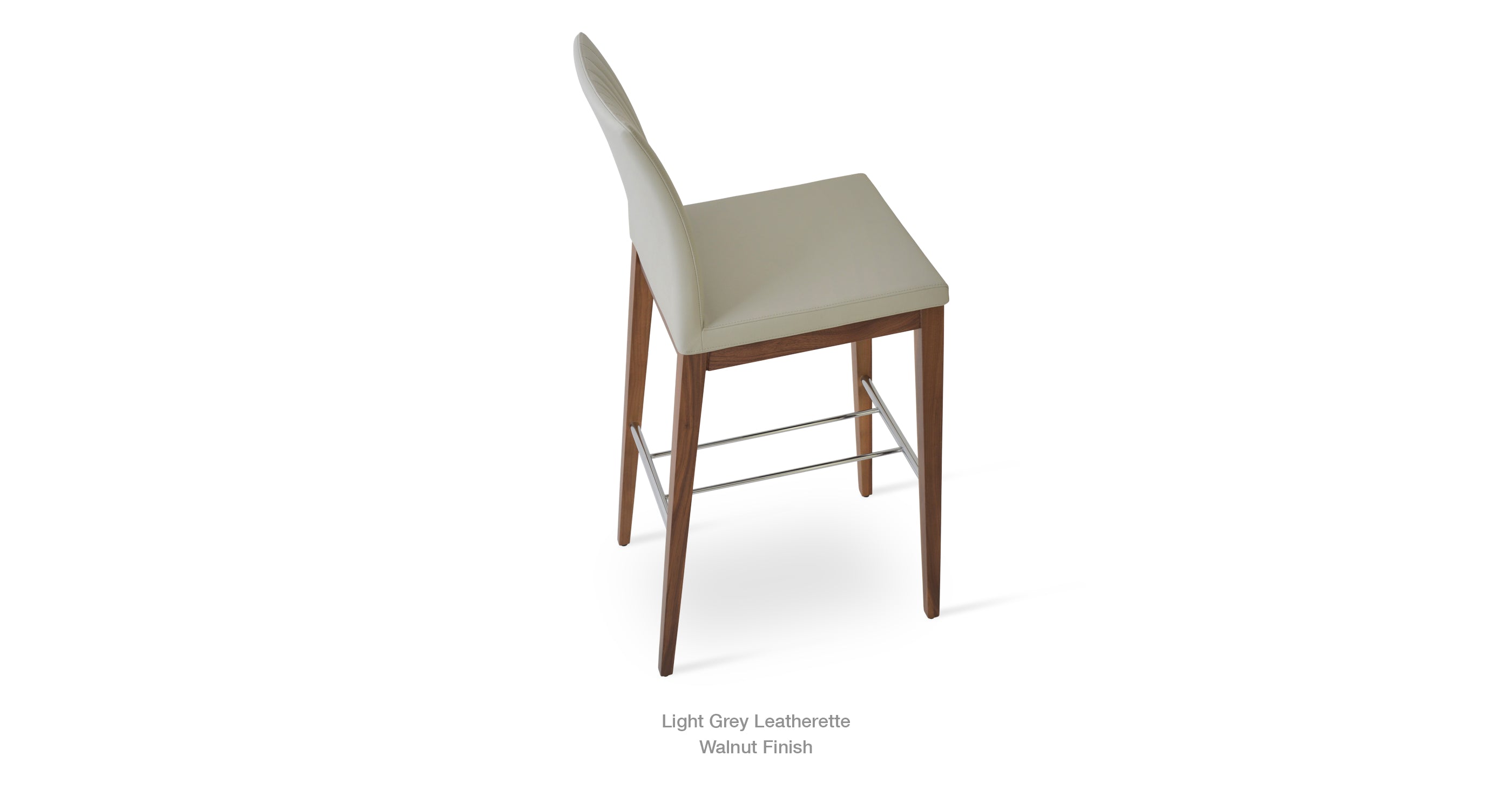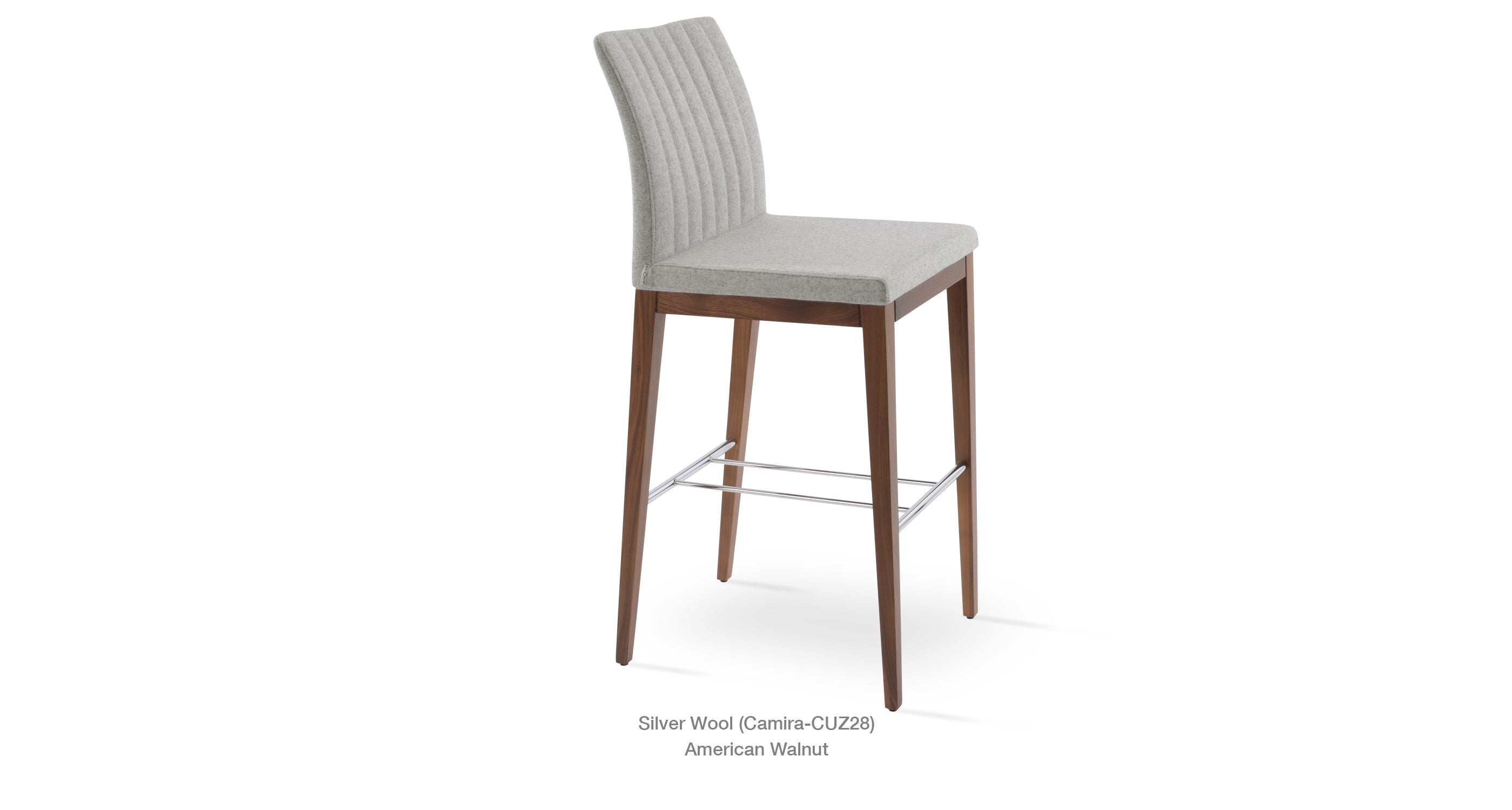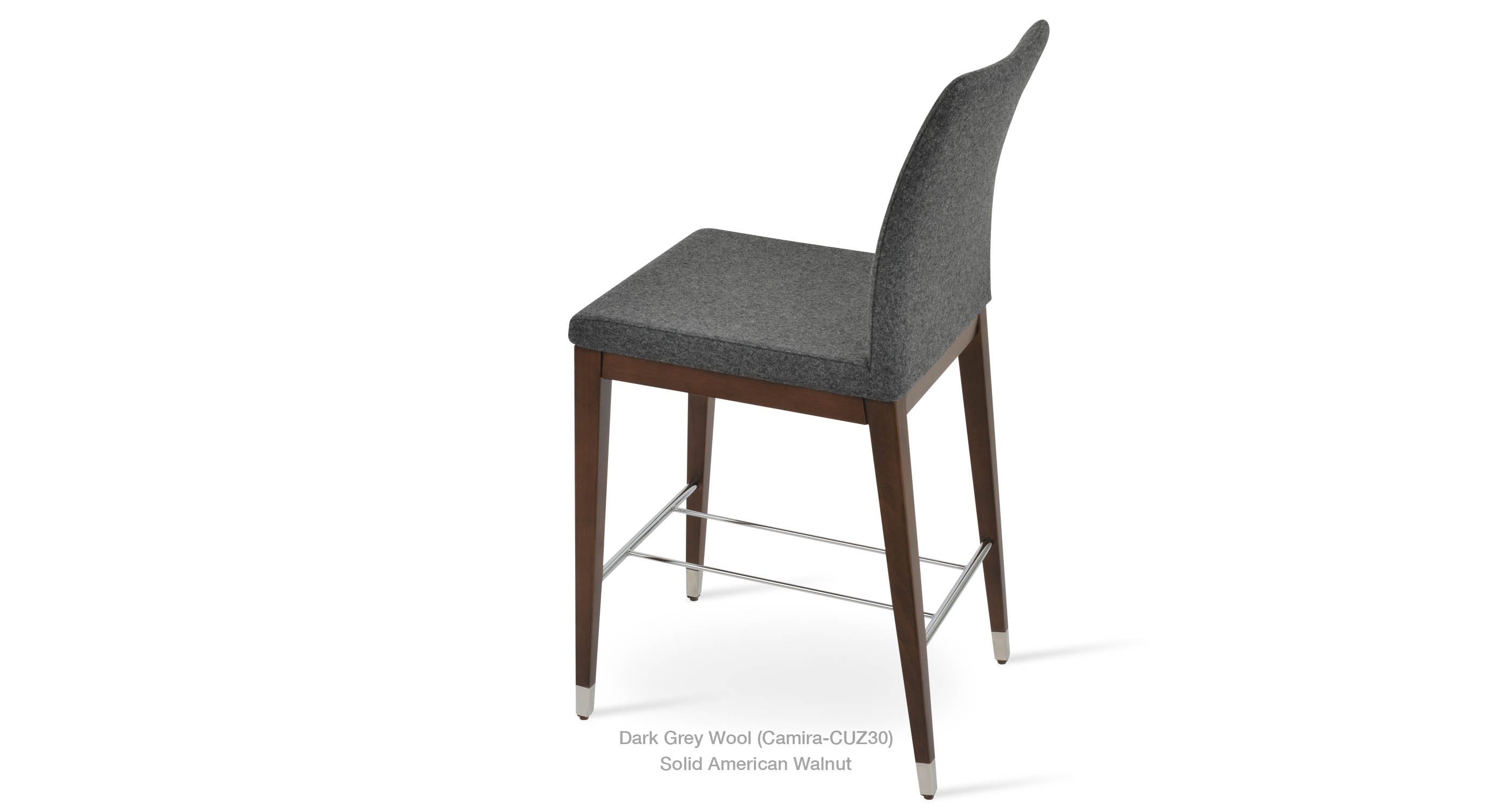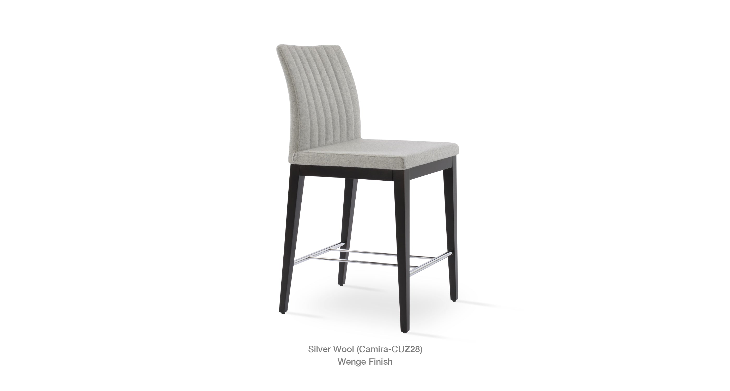 Zeyno Wood Stool is a contemporary bar and counter stool with a comfortable upholstered seat and backrest on solid beech legs. With its chromed steel footrests, it is an ideal stool for bars and counters. The seat has a steel structure with “S” shape springs for extra flexibility and strength. This steel frame is molded by an injecting polyurethane foam. Zeyno seat is upholstered with a removable velcro enclosed fabric, leatherette, PPM, leather or wool fabric slip cover. The stool is suitable for both residential and commercial use.