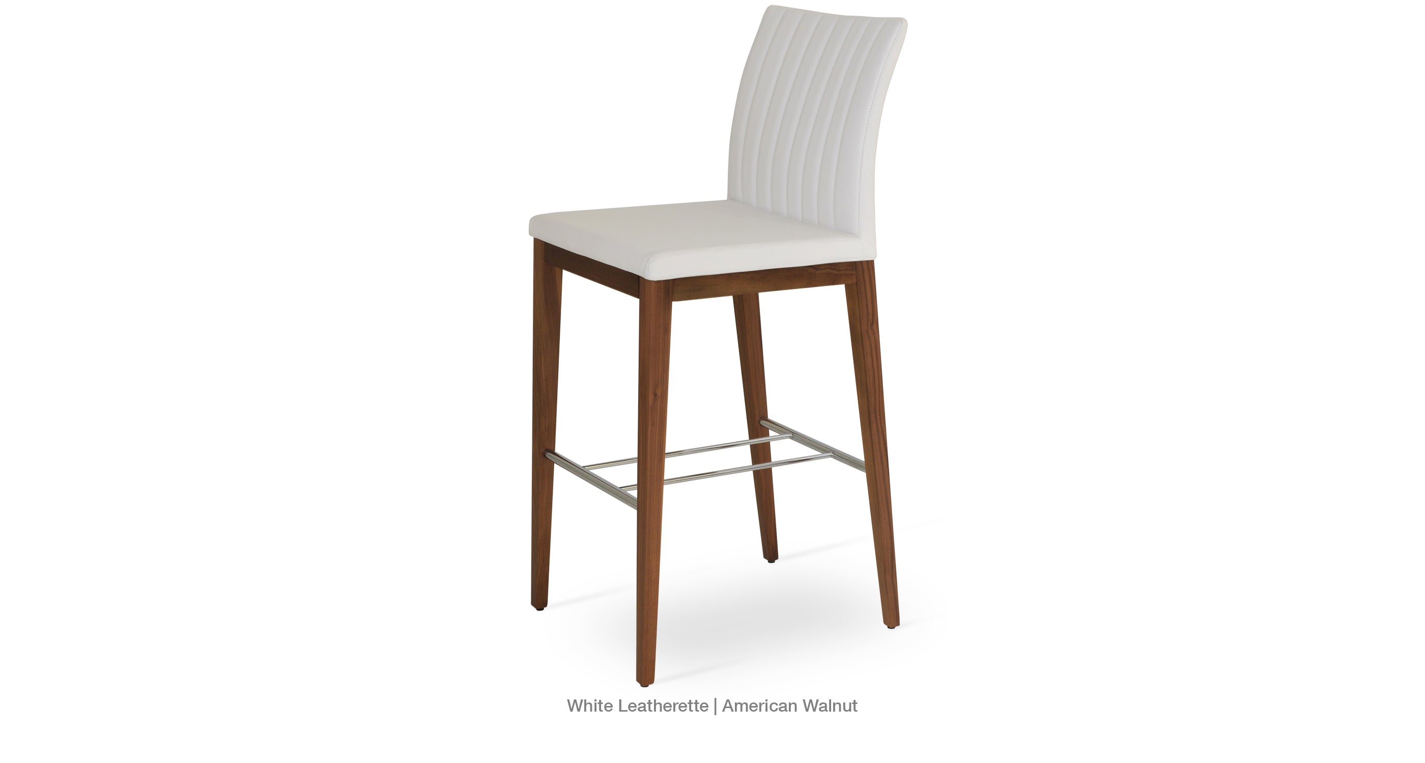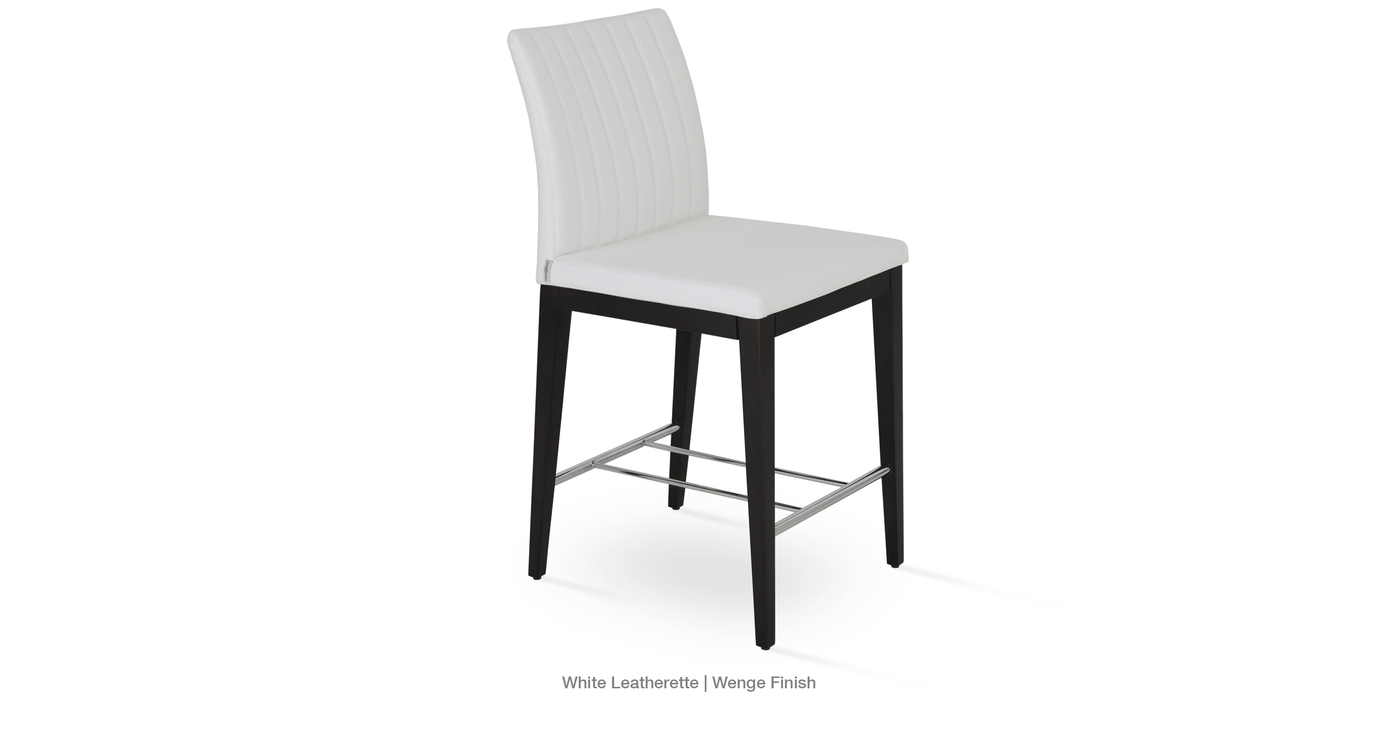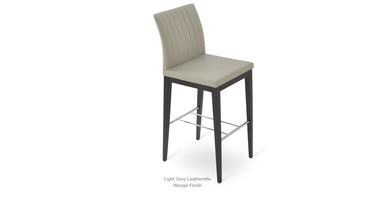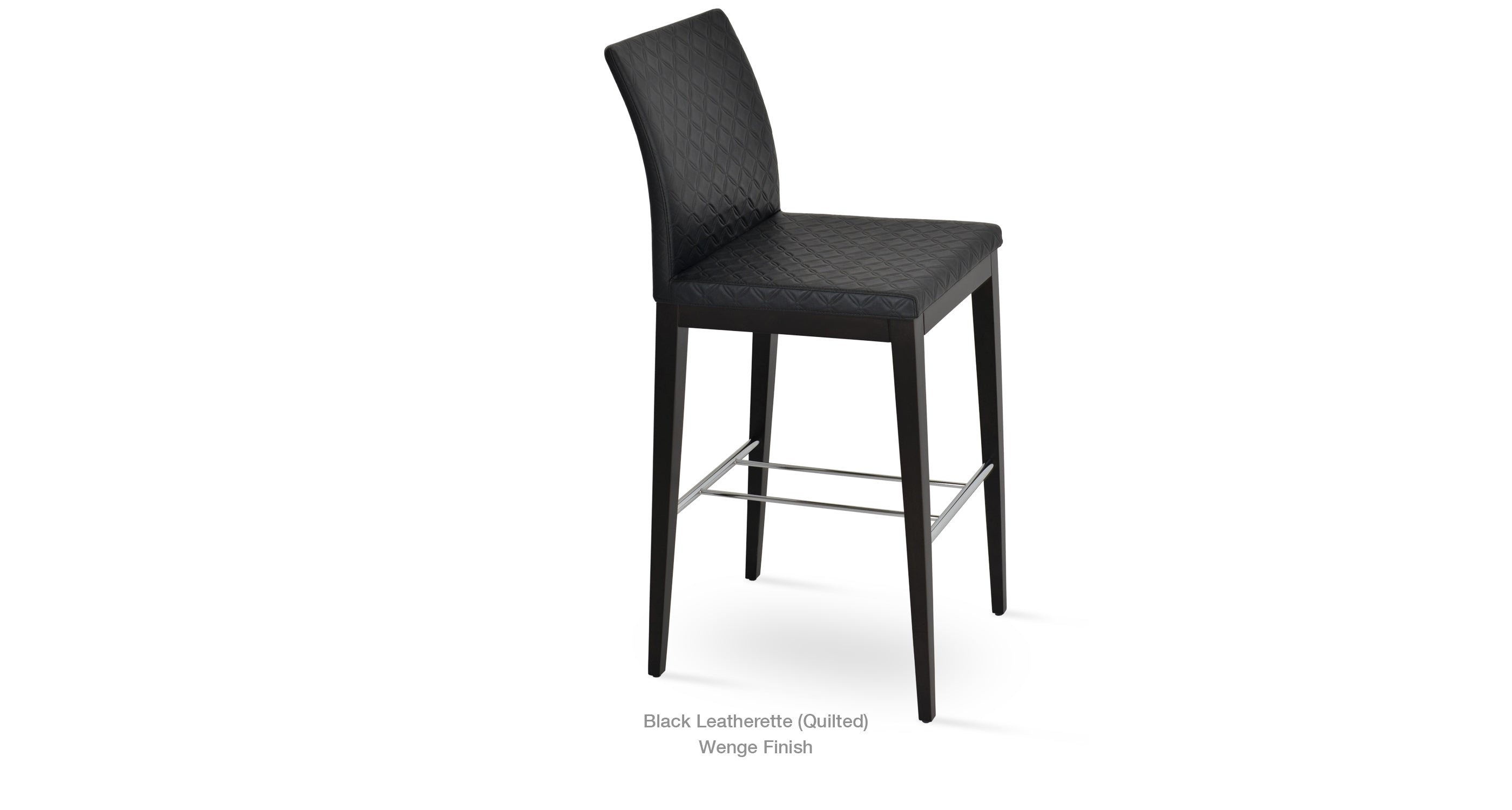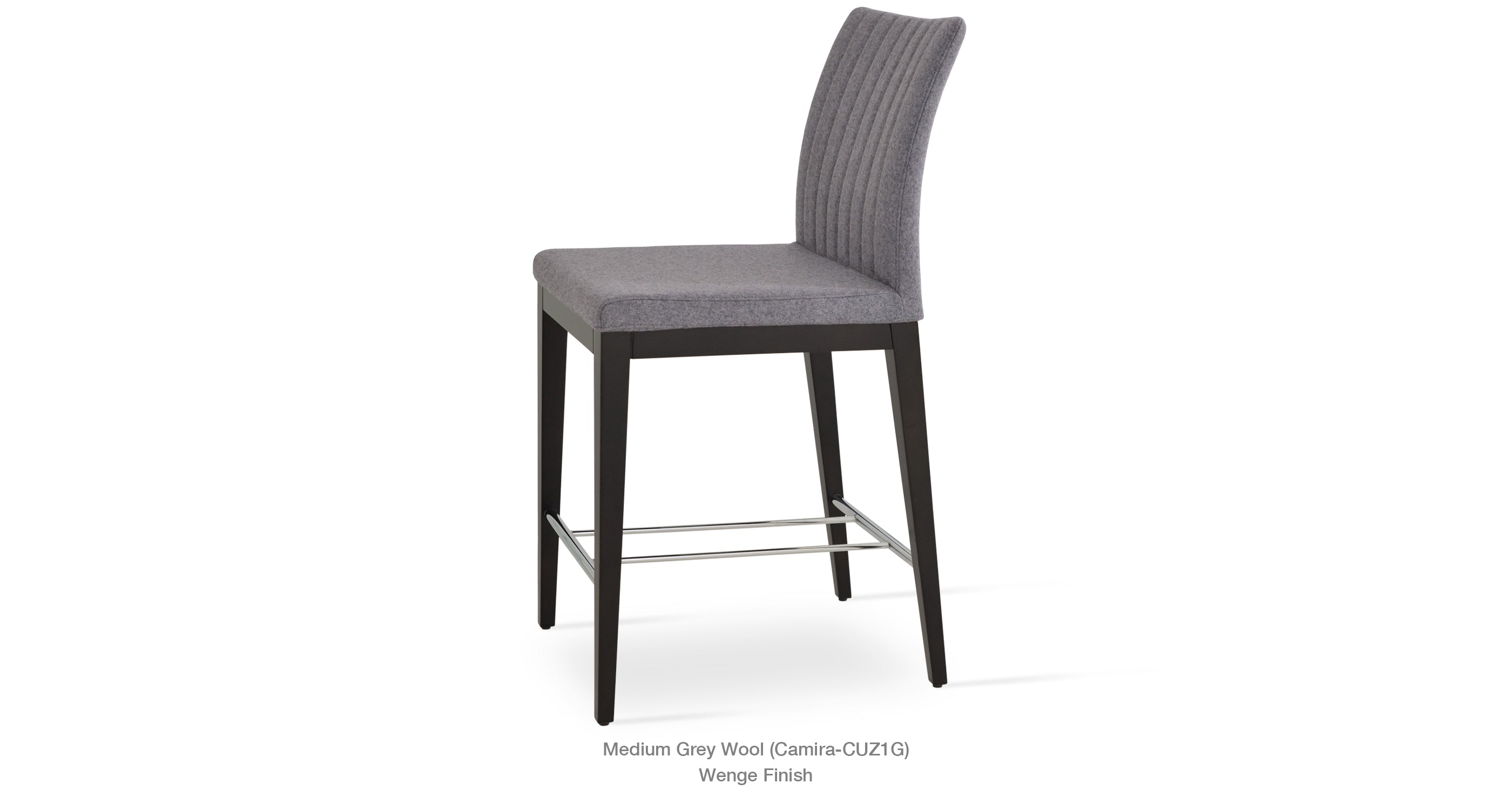 Zeyno Wood Stool is a contemporary bar and counter stool with a comfortable upholstered seat and backrest on solid beech legs. With its chromed steel footrests, it is an ideal stool for bars and counters. The seat has a steel structure with “S” shape springs for extra flexibility and strength. This steel frame is molded by an injecting polyurethane foam. Zeyno seat is upholstered with a removable velcro enclosed fabric, leatherette, PPM, leather or wool fabric slip cover. The stool is suitable for both residential and commercial use.